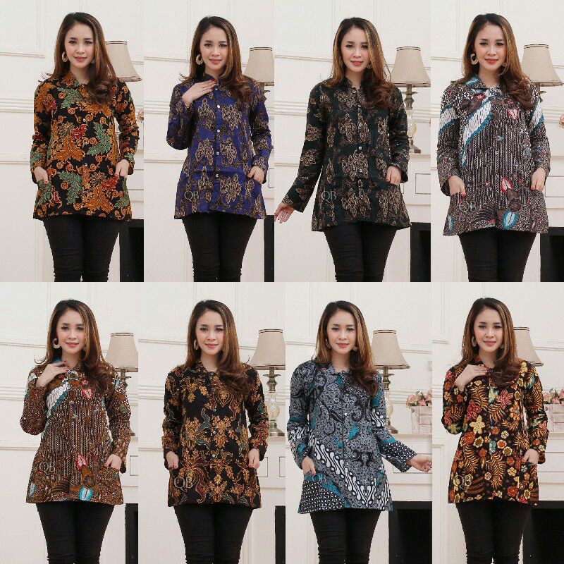 Detail : Model Blus Tanpa Kerah, Kancing Bablas, Lengan Lonceng