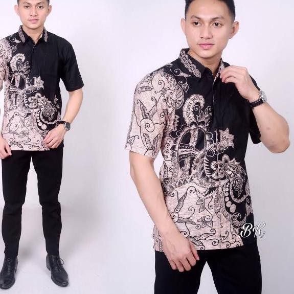 Cuci Gudang Pakaian di Kabupaten Kepulauan Talaud Terlaris Kemeja Batik Pria Lengan Pendek Original Motif Hitam Manis Kujang Atas Sragam M L Xl 78 dari Evelypseller Kab. Sidoarjo